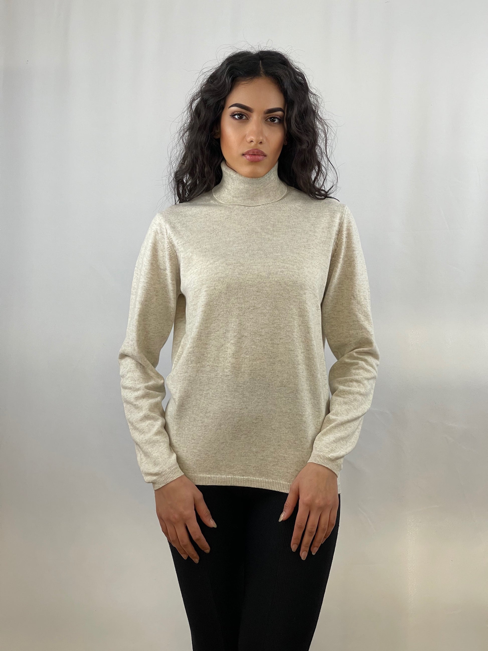 Our women's long-sleeved turtleneck is a timeless classic. Thanks to its classic fit, it adapts perfectly to every body type, enhancing your curves. Made with high-quality materials, it will guarantee you comfort and warmth on every occasion. Add a touch of elegance to your wardrobe with our turtleneck.