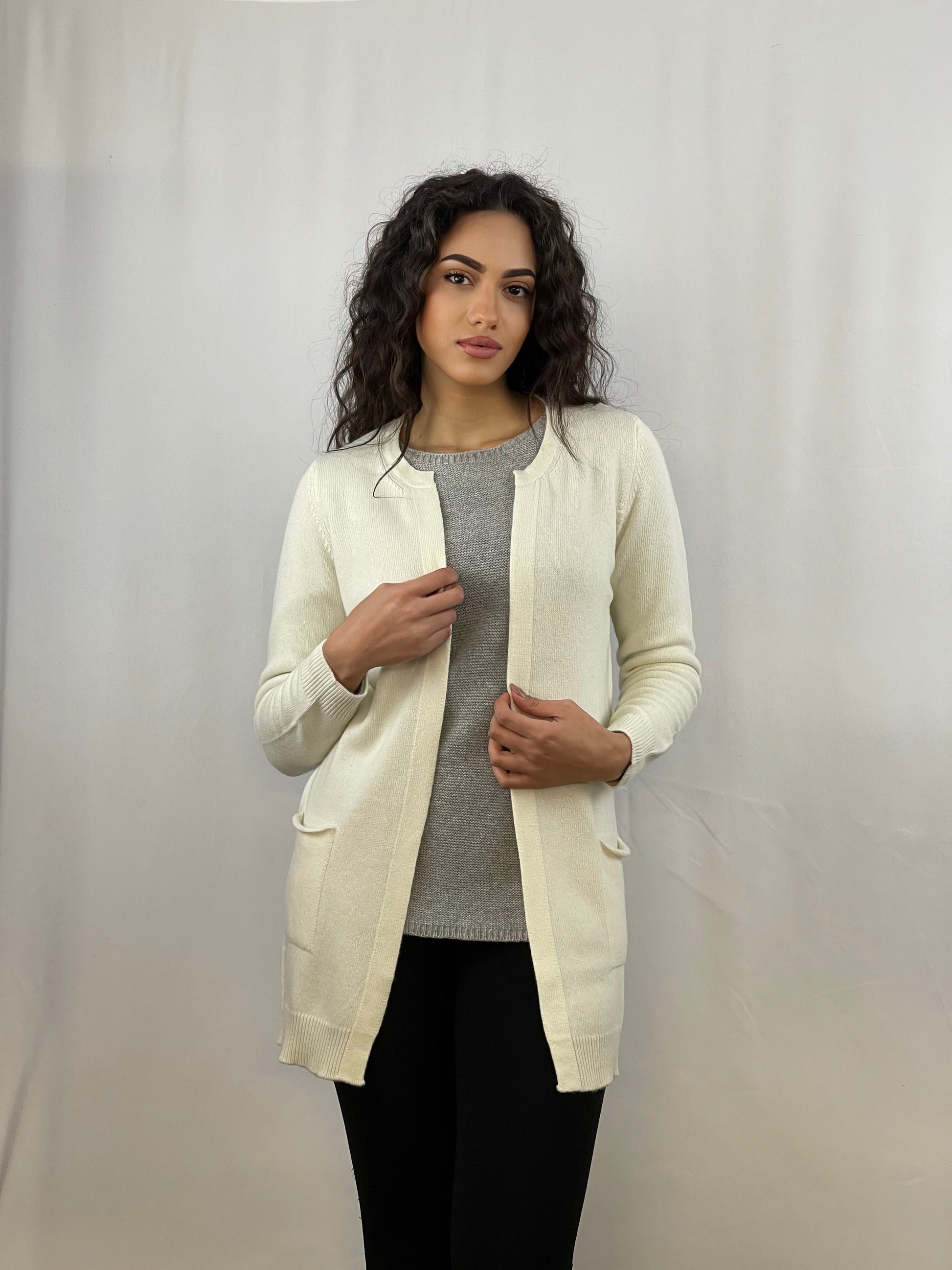 For a woman who is elegant and comfortable, our Maxi Cardigan is perfect. With pockets and a mandarin collar, this long double-thread cardigan offers a soft and chic fit. Ideal for any occasion, adding style and functionality to your wardrobe.