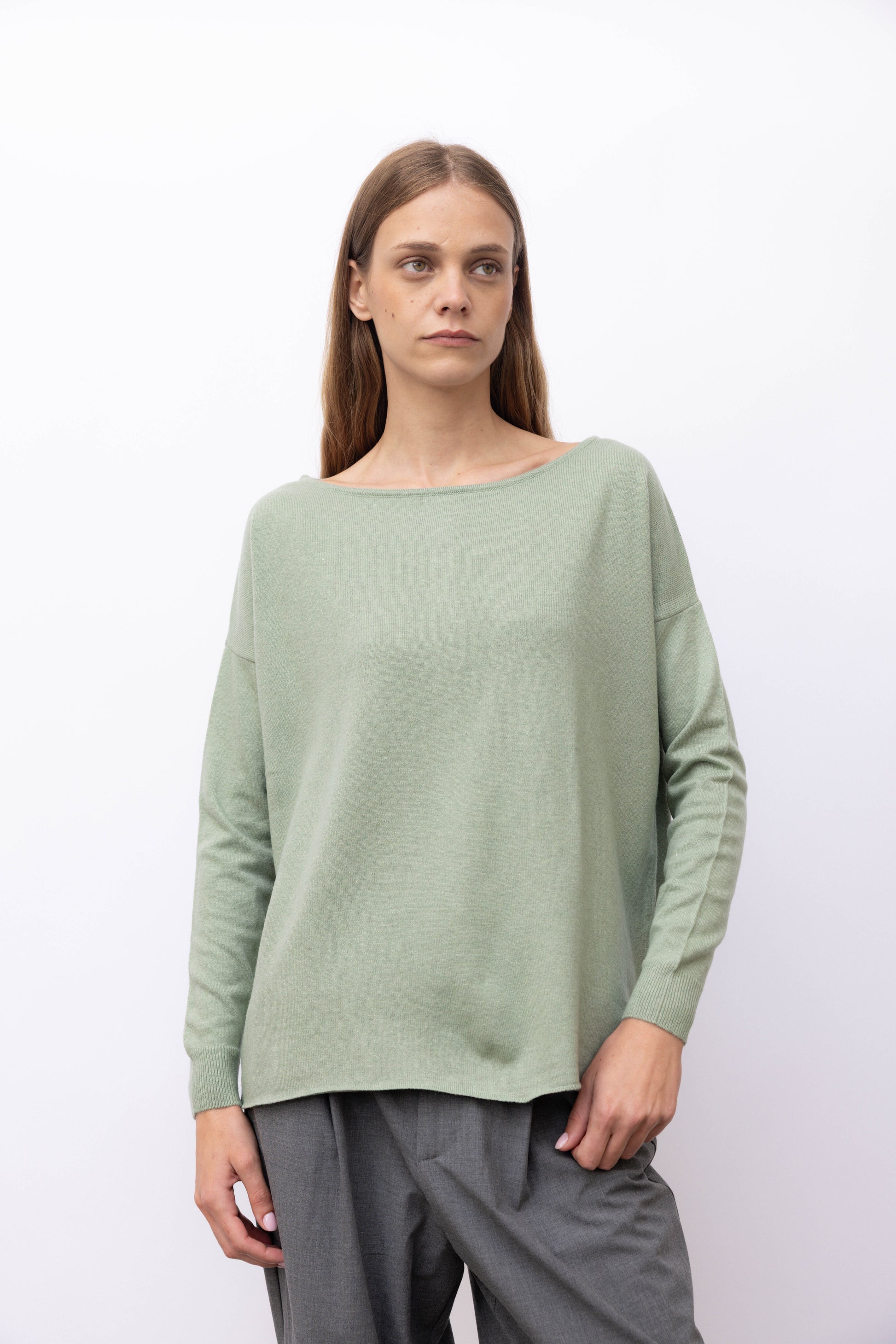 Perfect for women who love a unique style. It features a boat neckline that adds a touch of elegance, while the buttons on the back offer the possibility of adjusting the fit so as to achieve an over-sized silhouette. With long sleeves, it is the perfect piece for any occasion.