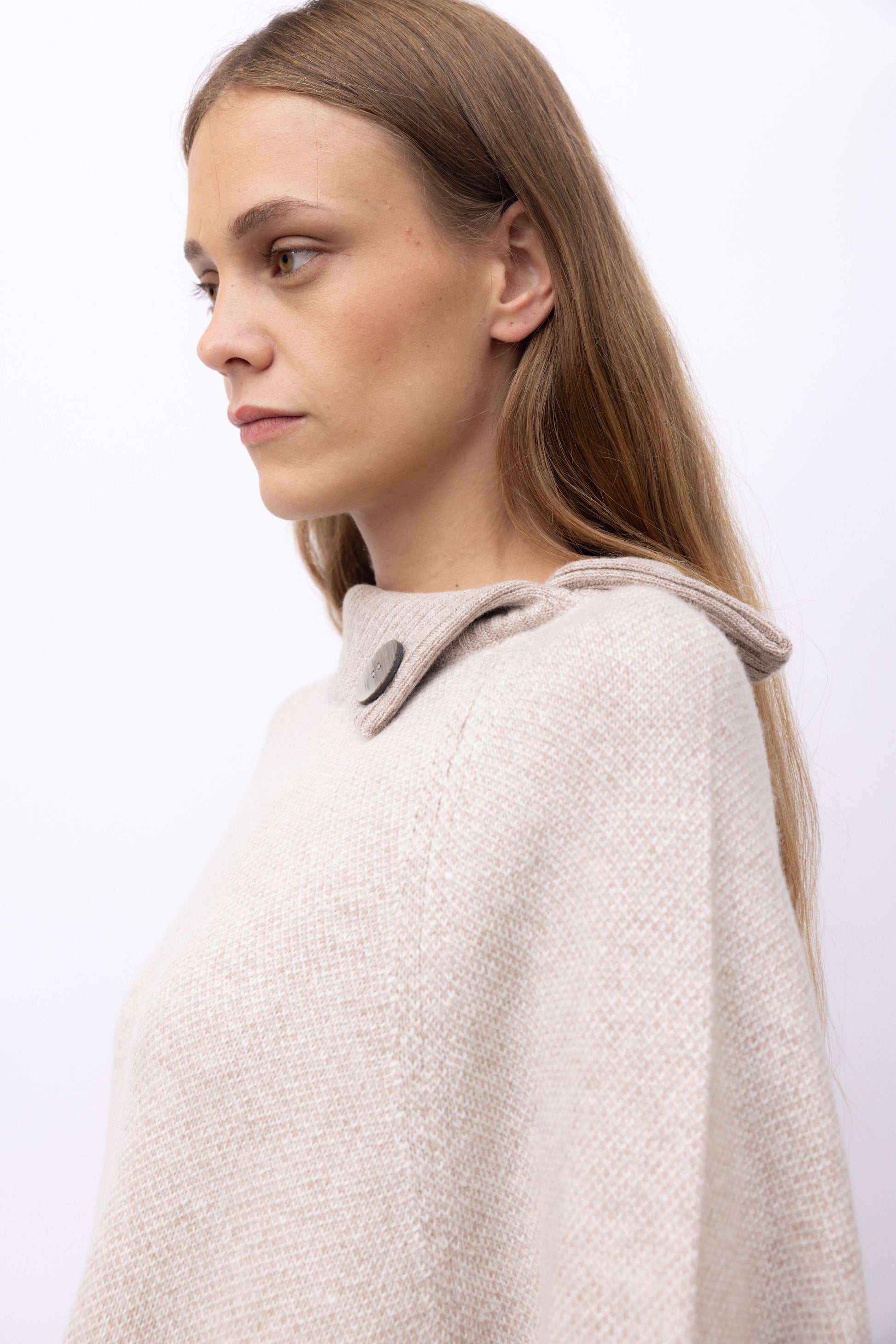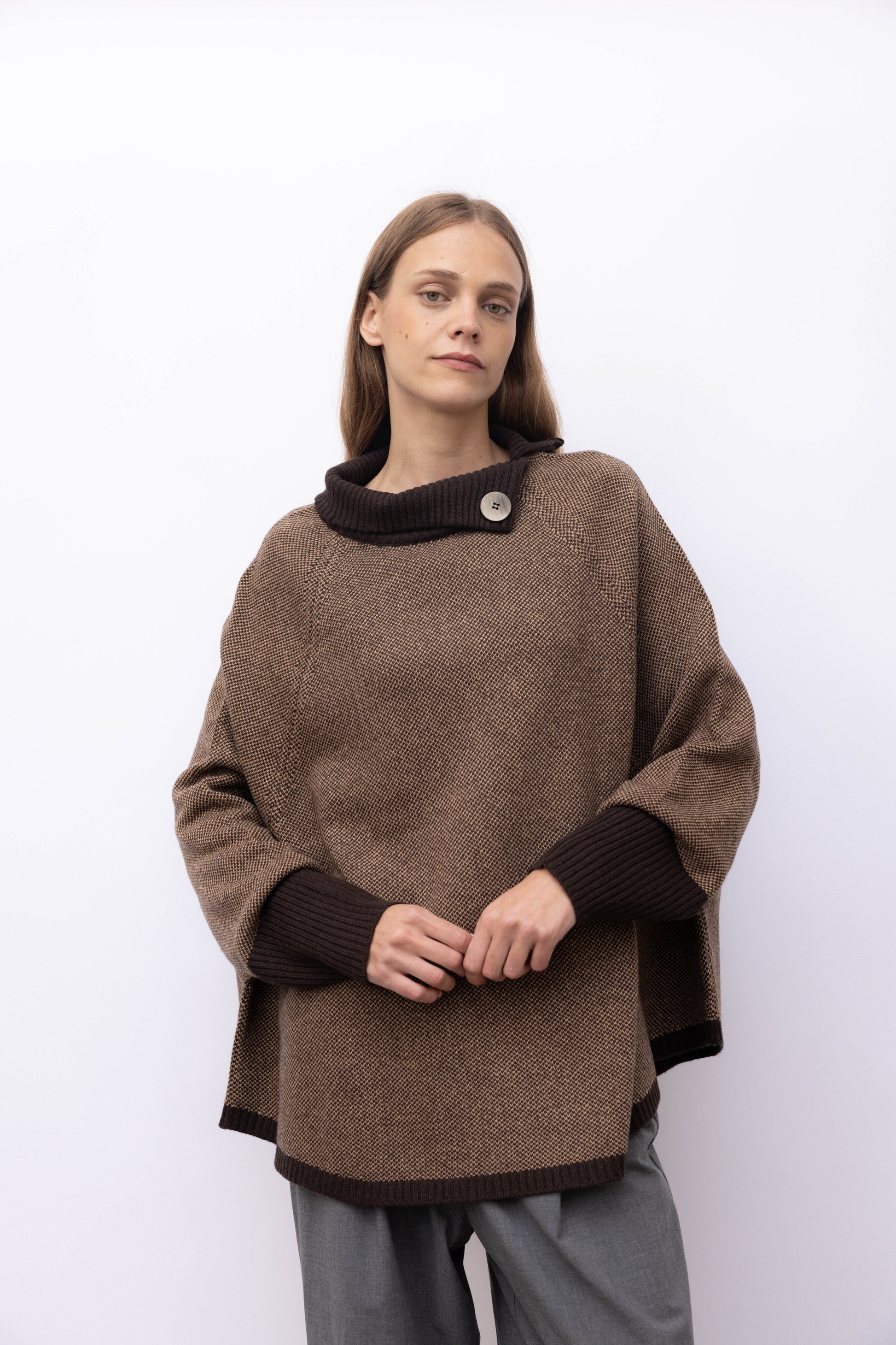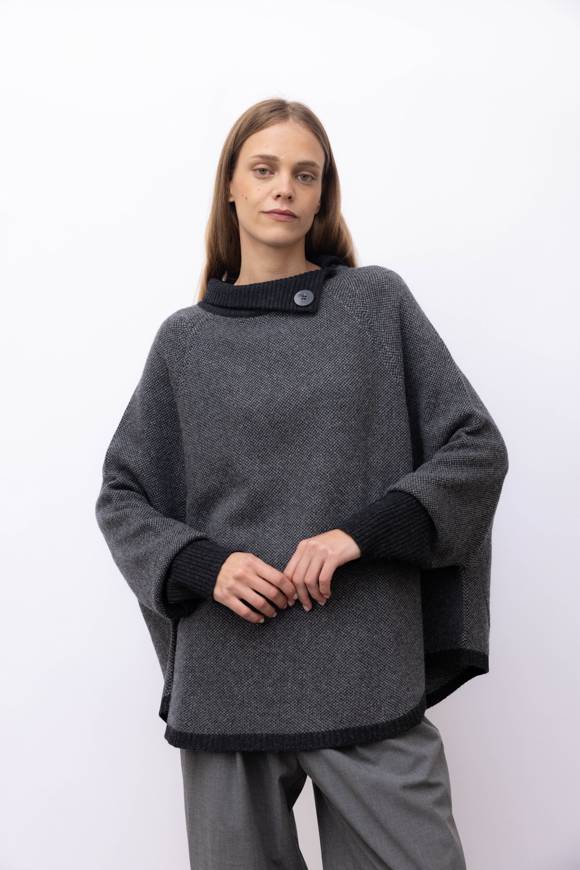 This cashmere cape is the perfect compromise between luxurious softness and practicality. Thanks to its double-faced two-tone design, this piece can be worn on different occasions, adding a touch of elegance and style to your outfit. Don't give up warmth and versatility with this exceptional cape.