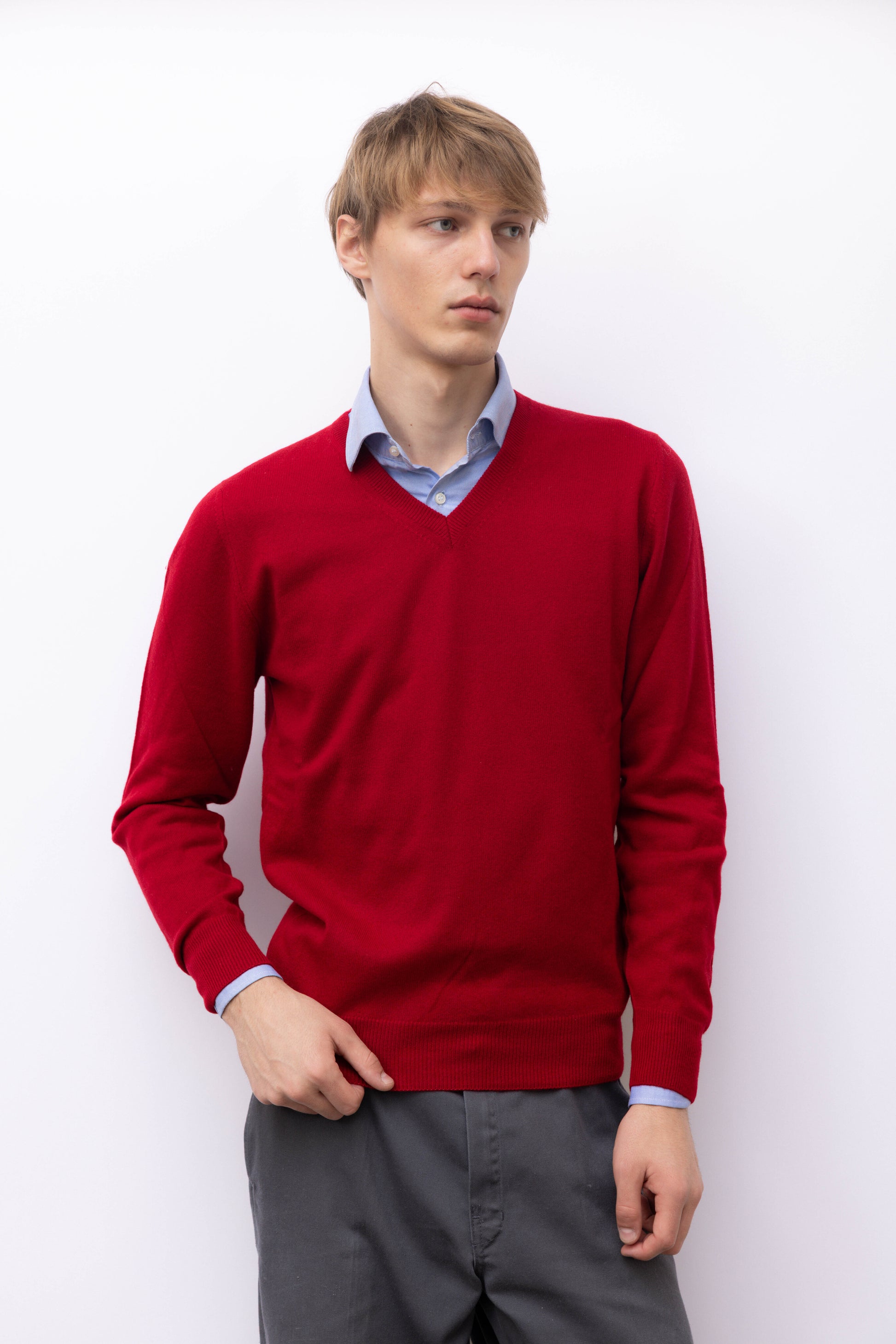 This men's V-neck sweater is crafted from 100% pure 2-ply cashmere, ensuring a classic and comfortable fit. Cashmere is known for its softness and warmth, providing a luxurious experience for the man who wears it. Great for cold winter days.